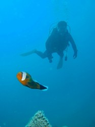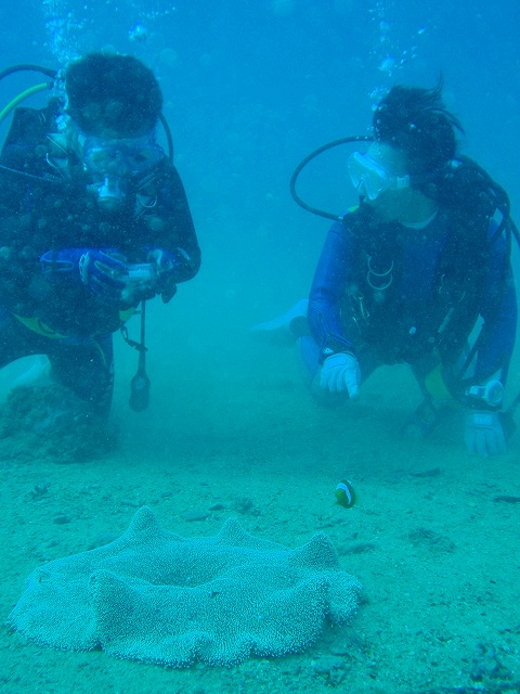 1本目では 参加者お二人の 移動の速さに助けられあっという間にトウアカクマノミまで到着。じっくりいろんな写真を撮って(背中のハートマークもね)残圧確認してもまだ余裕。 ブリーフィングとは異なるルートになる旨水中ノートでお伝えして ちょっと寄り道。 ツバメウオ、ヨスジフエダイ、ムレハタテテダイ、などの派手目で大きめの魚達を見てから船に戻ったのでした。