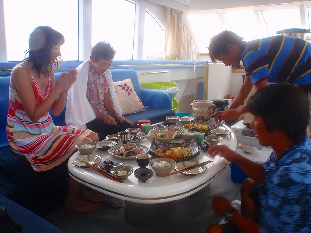 雨も降っていたのでキャビンの中でお昼ご飯です。