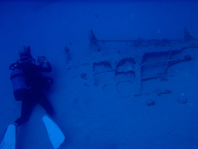 深場にある飛行機の羽根を見に行って、砂地からひょこっと顔をだすミナミホタテウミヘビや