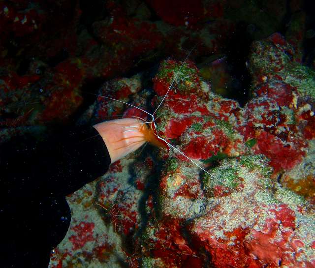 メインのスカシテンジクダイがついている岩の下を覗けばエビもたくさん!
