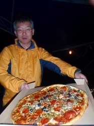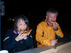 そして、歩く人々が抱えている大きなピザの売り場をついに発見です!