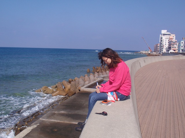 その後天気が良かったので、防波堤で海を見ながらロギング
