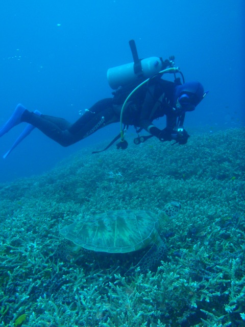 なんと今日はウミガメがサンゴの上でお昼寝中Zzz