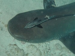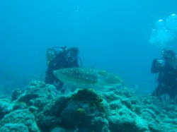 おっきいネムリブカもすやすや穴の中に!僕らが近づいても逃げませんね。
