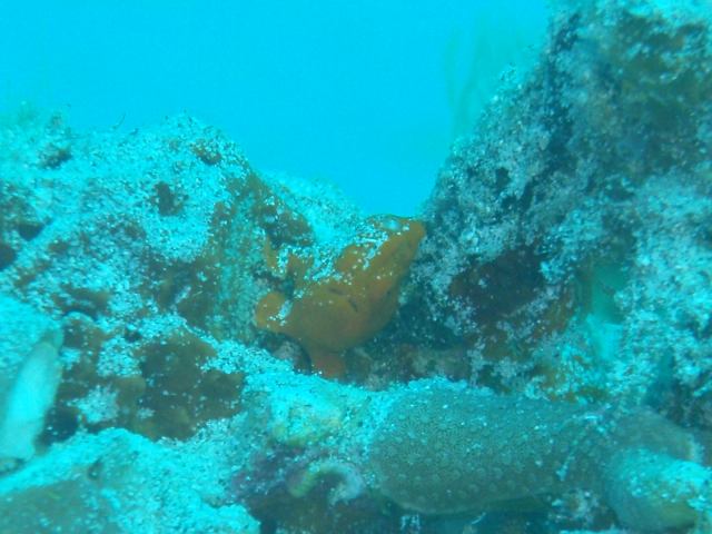 砂地のサンゴにデバスズメダイがかくれんぼしたりそのサンゴの下にはチョウチョウウオの子供がいたりと賑やか♪