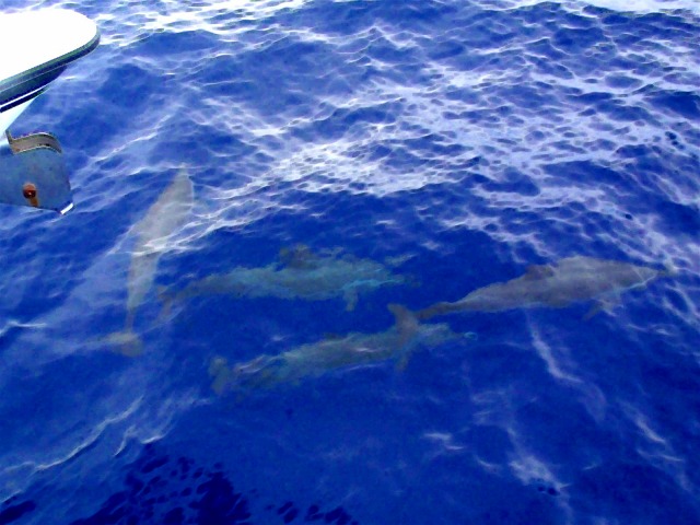 久しぶりのビーフラップでのガイドです。意気揚々と出航し、黒島に差し掛かったところでイルカの群れに遭遇!