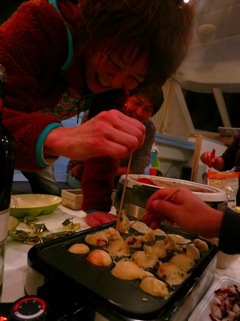昨日の夜はダイビングあとビーフラップにてモツ鍋パーティや去年からブームと化したたこ焼きで盛り上がっていました!