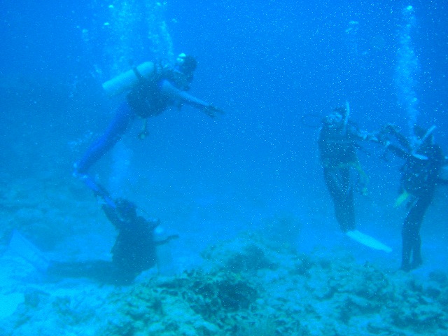 さてさてダイビングですが 50本記念を迎えたお客さんもいて 水中で人文字で50の数字を作ってみましたー。