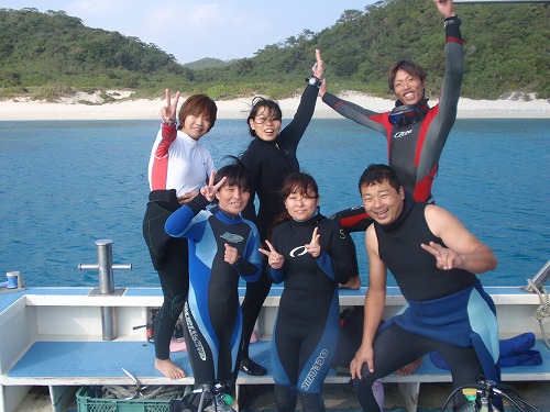 今日も慶良間に行ってきましたよ。今日のチームは女性ファンチームと、新婚旅行中のご夫婦体験チームの計2チーム。