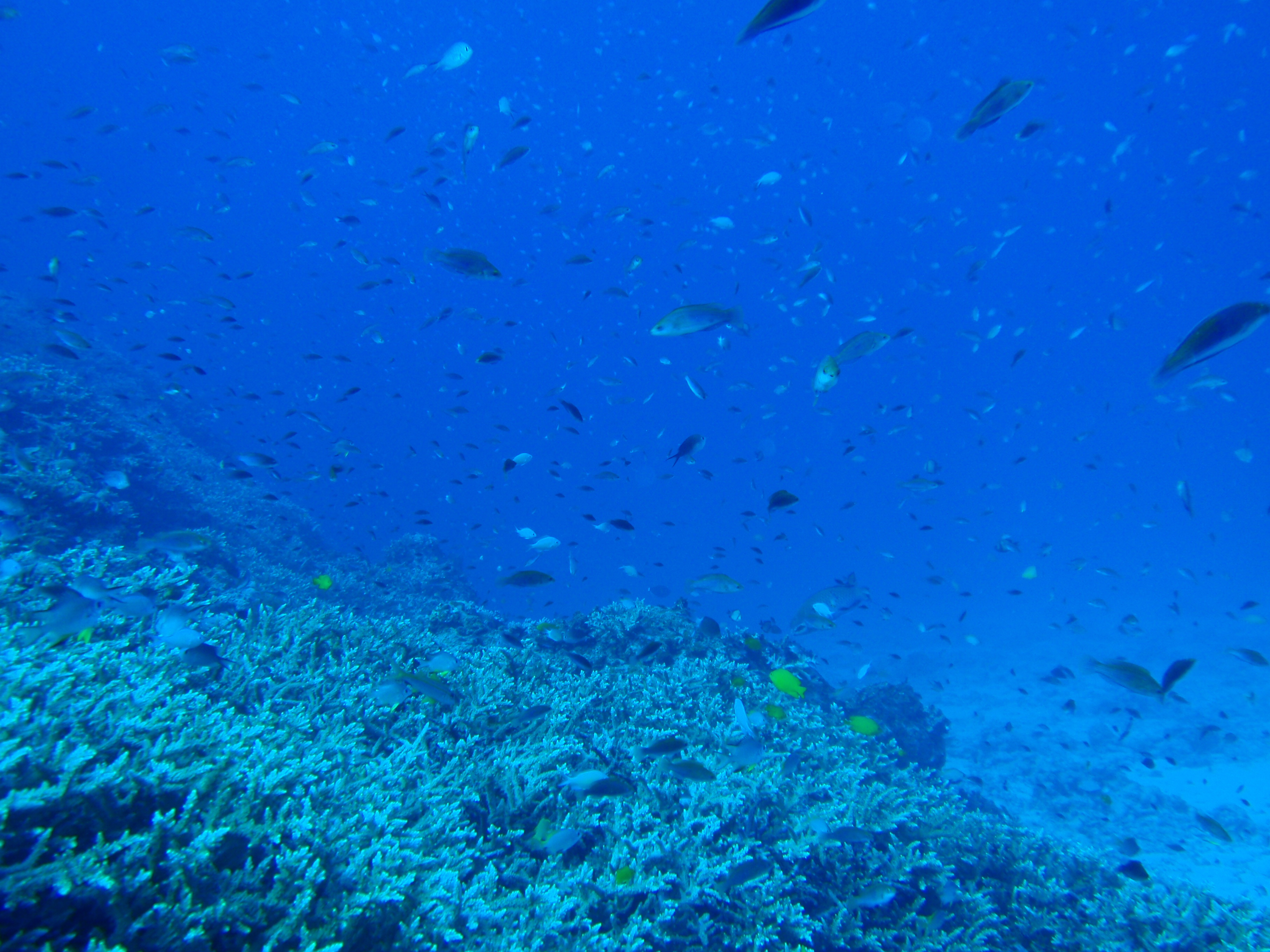 こちらは野崎のサンゴと魚群。いつ見てもこの大量のさんごと元気な魚たちで嬉しくなっちゃいます。
