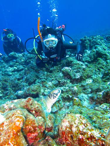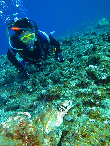 エントリーして3分でアオウミガメを発見!