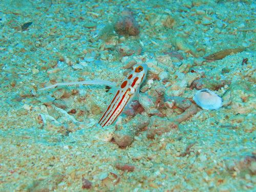 砂地を探せばヤシャハゼやヒレナガネジリンボウも水深15mほどで見ることができます。