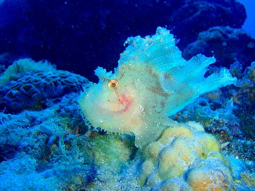 2cm程度のカエルアンコウや岩陰を覗けばハダカハオコゼも獲物をじっと狙っています。