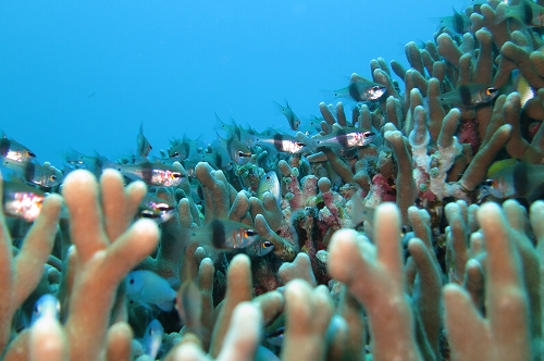 白い砂地にエダサンゴの群生、ドワァ~っと