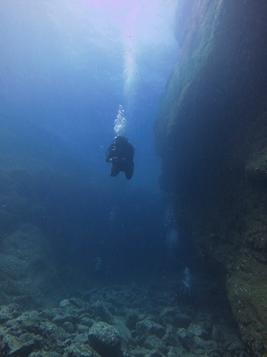 そこは地形が特徴のポイントでとても大きな岩がゴロゴロとしているような場所で、その岩は普段いくようなポイントの岩とは岩肌の質も違っていてとても大きく壮大感のあるポイントでした。