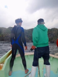 参加したメンバーは ORICの組合員でもある各ショップから総勢11名。東村側としては「カヤックやトレッキングなどの分野に関しては豊富なノウハウと実績もあるけれどマリンに関しては これから」と言う事で今回の調査を通して プロの目から見てここの海がレジャーダイビングとして一般のお客様に楽しんでいただける物か?と言うところに関心があるようです。