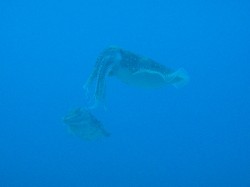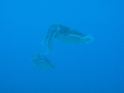 コブシメ発見!メスをとり囲むようにオス達が群れています。まさにハーレム状態!「うふっ」