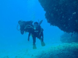 「海の中はステキですね。でも中性浮力はムズカシイ・・・次こそは今日よりも上手くダイビングしてみたい!!可愛い魚や今日は見れなかったカメが見れますように・・・渡部さん、スタッフの皆さんお世話になりました」