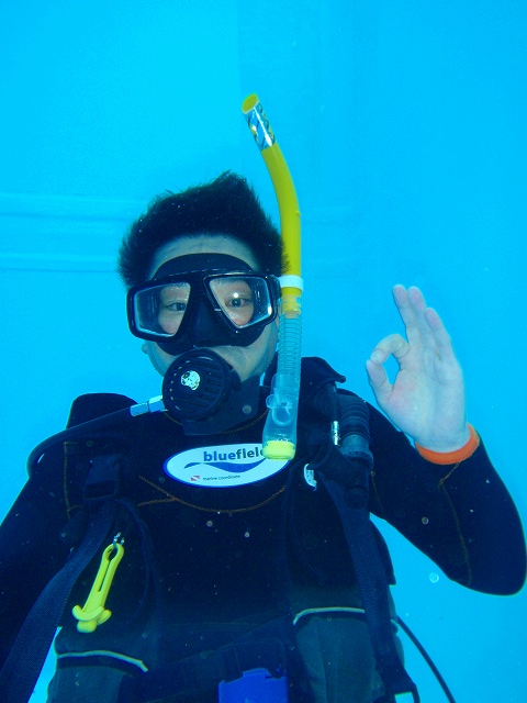 松本は、マンツーマンでオープンウォーター講習の初日です。