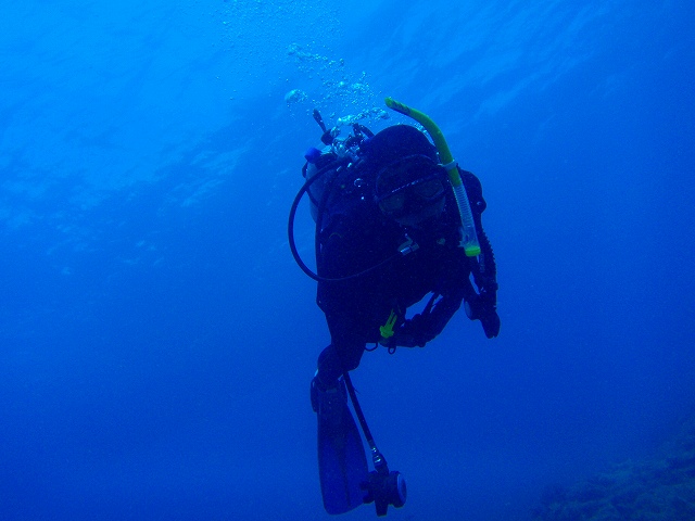 マンツーマンということもあり「様子を見ながら遊ぶ時間を増やせるかなぁ」なんて思っていたら 意外な事に耳抜きが不調。でも 潜ってしまえば何とかなるようで潜降に時間をかけた割には2本とも海洋実習初日の限界である12mまで行けちゃいました。