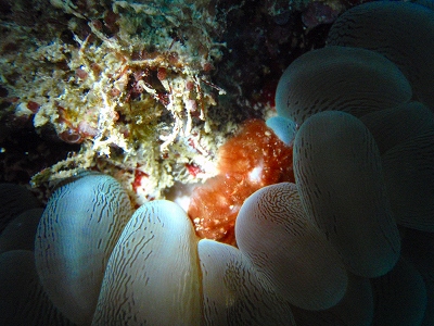沢山サンゴがありますが、その中には魚やエビ、カニがたくさん!とマクロも。