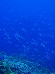 そして、そのサンゴの上を見るとグルクンの群れが!!とワイドも。