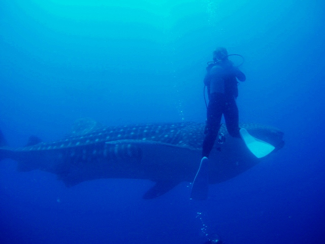 こちらはジンベエダイビングです。 晴天の下、ボートに揺られて沖のジンベエに会いに行きましたよん。