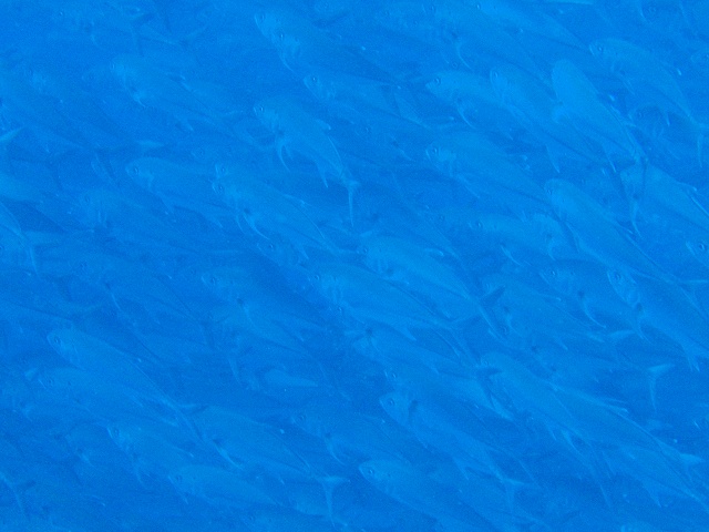 ものすごい数のギンガメアジにお客さんは安全停止を忘れたのかカメラを持ってじわーーっと降りて行きます。