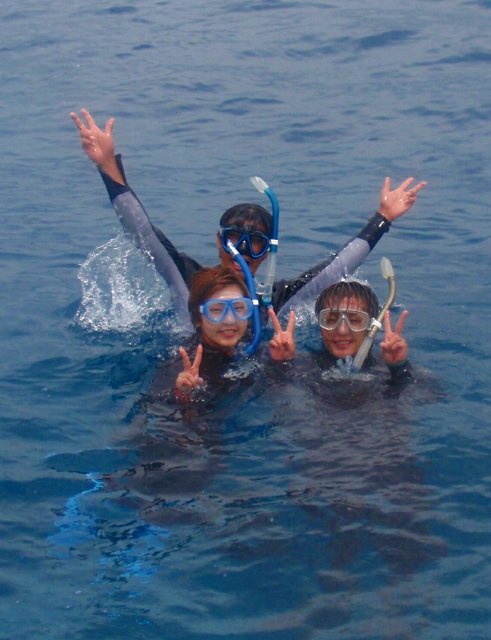 1本目はアリガーケーブルでスノーケリング。2本目はトウマ、3本目は野崎。
