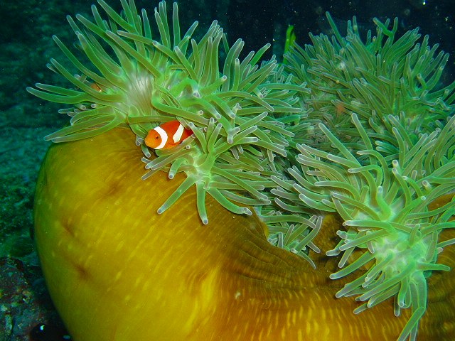 今日のカクレクマノミは丸まったイソギンチャクの中を元気に泳いでいました^^