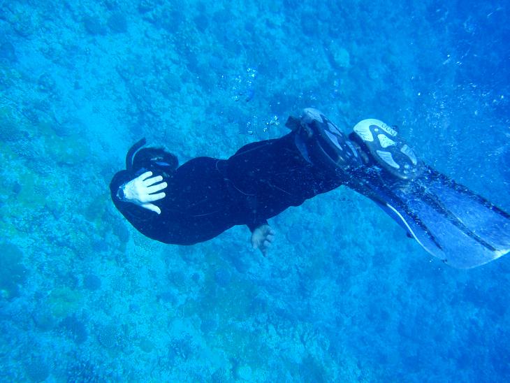 「あんまり水遊びしないから、こわいかも・・・」なんていってた彼ですが、海にはいってみると、暴走気味。ウェイトなしでも素潜りスーイスイ。体験ダイビングが待ちきれない感じ。
