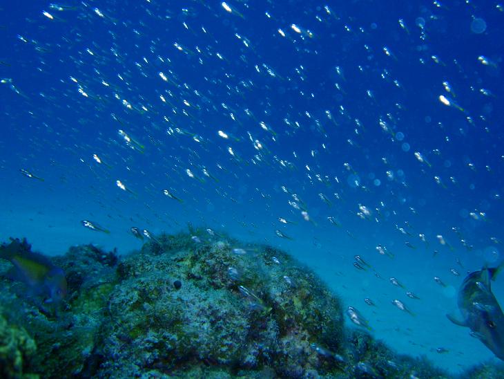 ドラゴンレディでは、夏になってすっごく増えてきたスカシテンジクダイの群れをチェック。