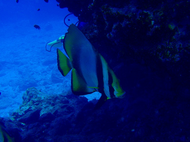 チラリチラリとアカククリ(ツバメウオの仲間)を見たり、洞窟に入ったり、しっかりポイントの見所も押さえておきました。