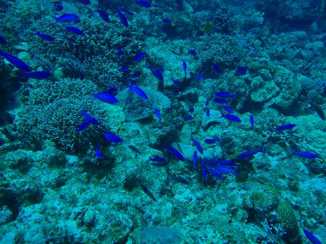 タートルリーフでは、もちろんカメにも会い、そしてハナゴイが乱舞しているところやウミウチワも見ました。ホシゴンベや、ツノハタダテダイ、ウミシダを観察したりもしましたね。