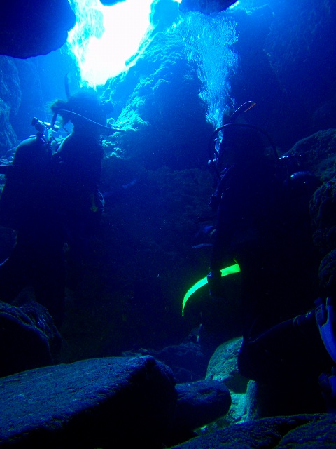 以前良くサメがいた 穴にはハタンポの群だけが平和そうに群れていました。その穴の中でシルエット撮影に挑戦。