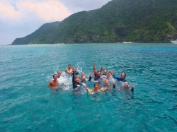 あまりに天気がよく、海もキレイで気持ち良いので、みんなで休憩時間なのに飛び込んでしまいました。