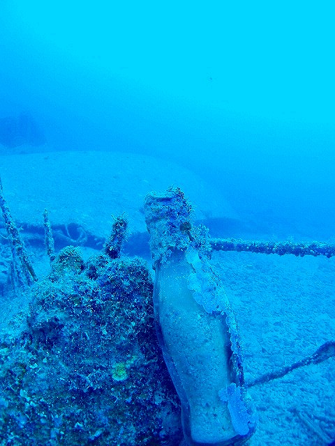 とてもきれいなソフトコーラルが広がる根の先に、何やら残骸が落ちているのです。エモンズツアーの時に協力してくれたジムさんと共に水野氏も何度か調査ダイブをしていたのですが、今だに不明です