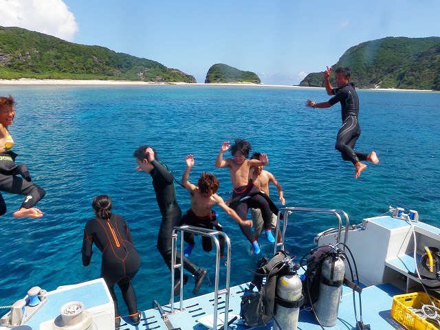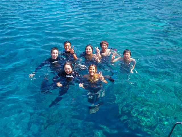 初めての慶良間と2度目の体験ダイビングのチームですよ~。元気がよくて思わずやってしまいました♪