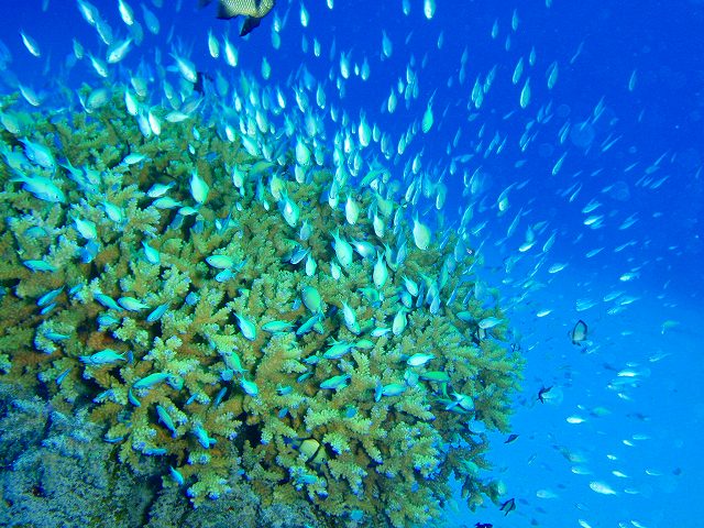 まずは、1本目!!ここは、サンゴも綺麗で、魚影も濃いんですよね~。皆で期待したながらエントリーです。すると、予想通りの魚影の濃さ!!そして、カメにまで会えましたーー♪