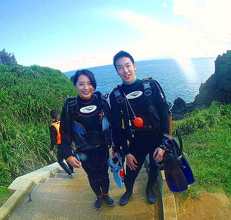 午前は、真栄田岬にて2DAY体験ダイビングの2日目です。