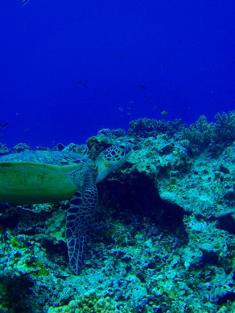 昨年の体験ダイビングでは見られなかった、カメにも会いましたよ~。