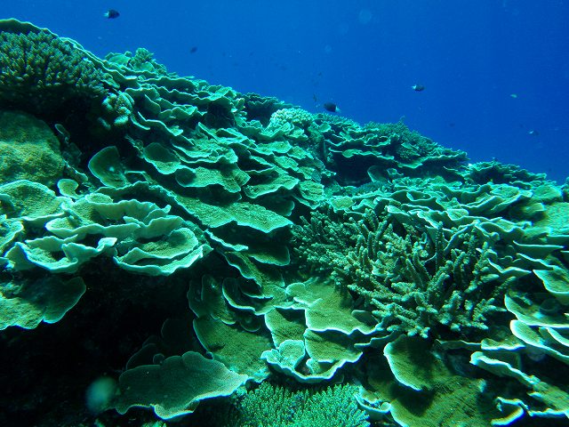 ヒージャーベイでは、元気なハナヤサイサンゴの群生や、「裏ツインロック?」の地形、そして浅瀬のサンゴを堪能してきました。