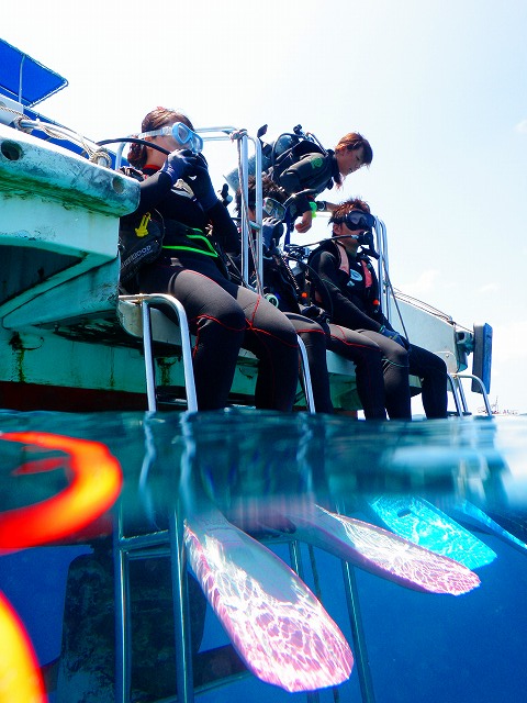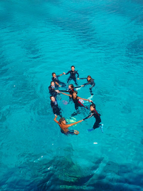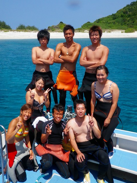 潜る前にみんなで写真を撮りましょうという事になっていろいろなポーズで撮影してみました。