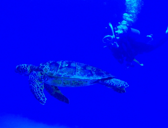 さて、では沖縄の水温が下がって平均水温が24度を切るのはいつごろかというと、なんと12月。服装もジーンズ&トレーナーという沖縄にしては厚着をするのも12月頃からでしょうか。それも曇りや強風という天候のときの話で 晴れていて風がないとなると 短パン&TシャツでOKな感じ。寒がりな人でもウエットスーツは2ピースを用意するか、フードベストの用意をすれば快適に潜れます。
