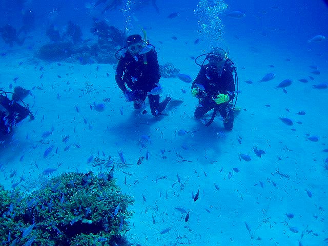 『たくさんの魚がみたい!!』ということでした。1本目、入ってみると流れが・・・しかし、そういう時は魚影が濃い!!綺麗に待っているスズメダイやグルクンが綺麗でした。