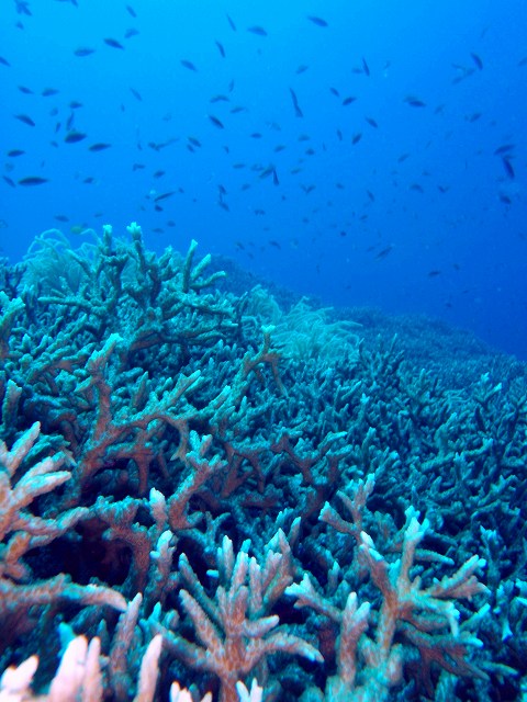 今日は、イソギンチャクエビもあたりとマクロにワイドに楽しめました。グルクンの群れもすごかったですねーー♪しかしなんと言ってもこのサンゴ達♪下から見上げるなんて無いですよねーーー♪