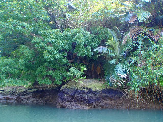 時折、「入り江」のようになっているところで、海水と淡水が混ざり合った喫水域ならではの生物を観察します。