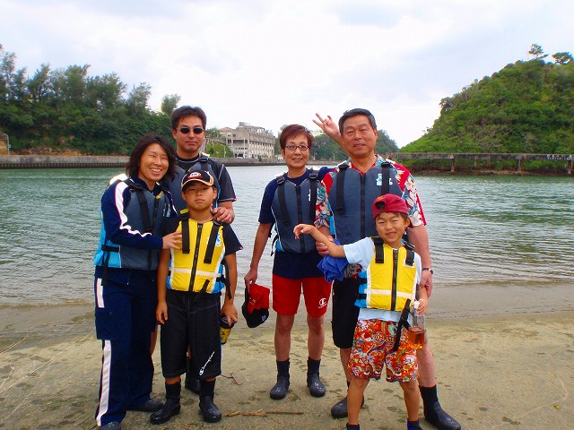 おじいちゃんおばあちゃん、それから孫まで三世代でカヤックです。