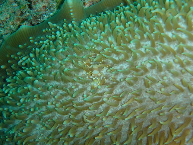 イナンビシではマクロ三昧!!カイカムリの仲間、なんだか定番になってきた?!ピグミーシードラゴン。糸くずみたいですがプルプル震えててかわいい。見つかったのがわかってプルプル震えだすのはきのせいかなのかな?それにカクレエビの仲間やイソギンチャクモドキカクレエビなジョーフィッシュなどなど。イソマグロの子供もまだ群れていしたねー!