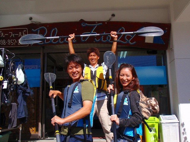 さて今日は新婚旅行で来沖したというお二人とカヤックへ行ってきました。ライフジャケットを着ると汗ばむ陽気の中パドルを手にぐいぐい漕いできましたよ~